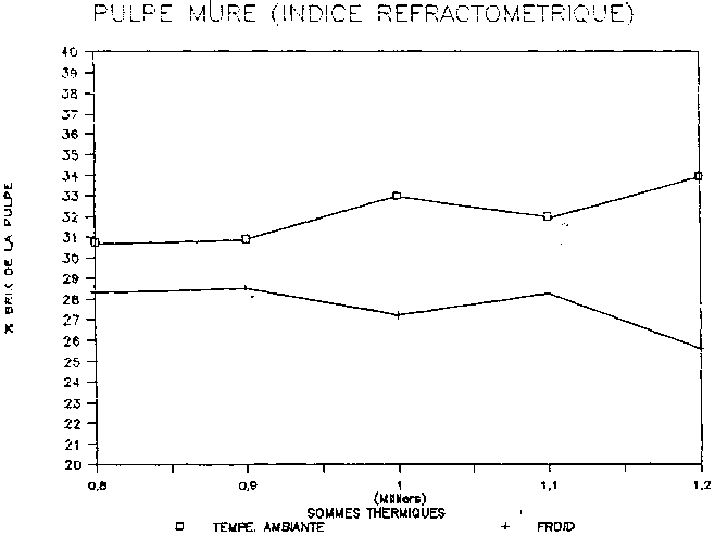 Figure 14: Indice refractometrique de la pulpe mûre en fonction du stade de récolte
