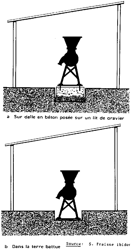 ii) placer le moulin dans une petite fosse d'environ 15 cm de profondeur de la même dimension que le châssis et ensuite recouvrir la fosse avec de la terre ou du sable pour amortir les vibrations.