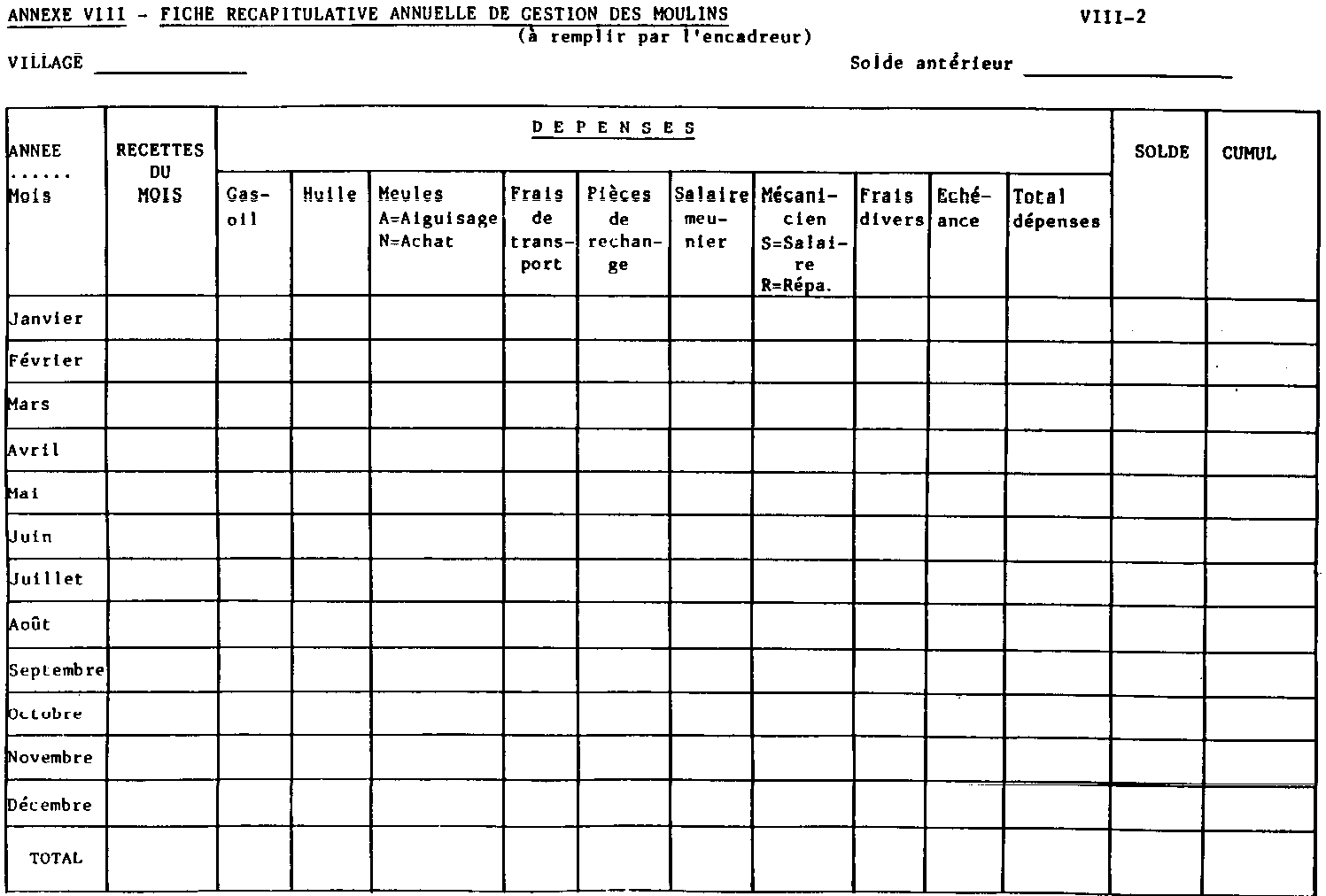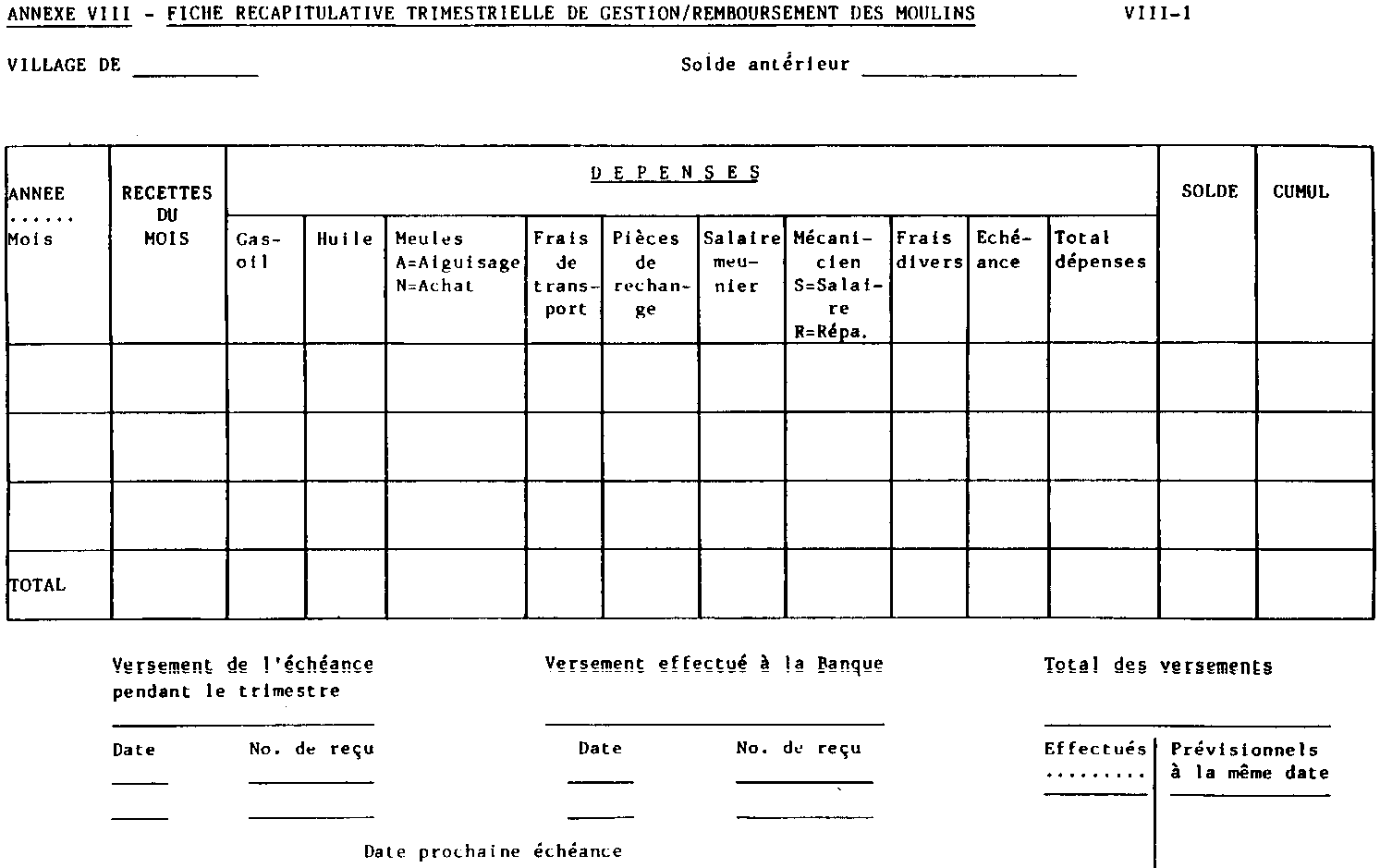 Fiche recapitulative trimestielle de gestion/remboursemment des moulins