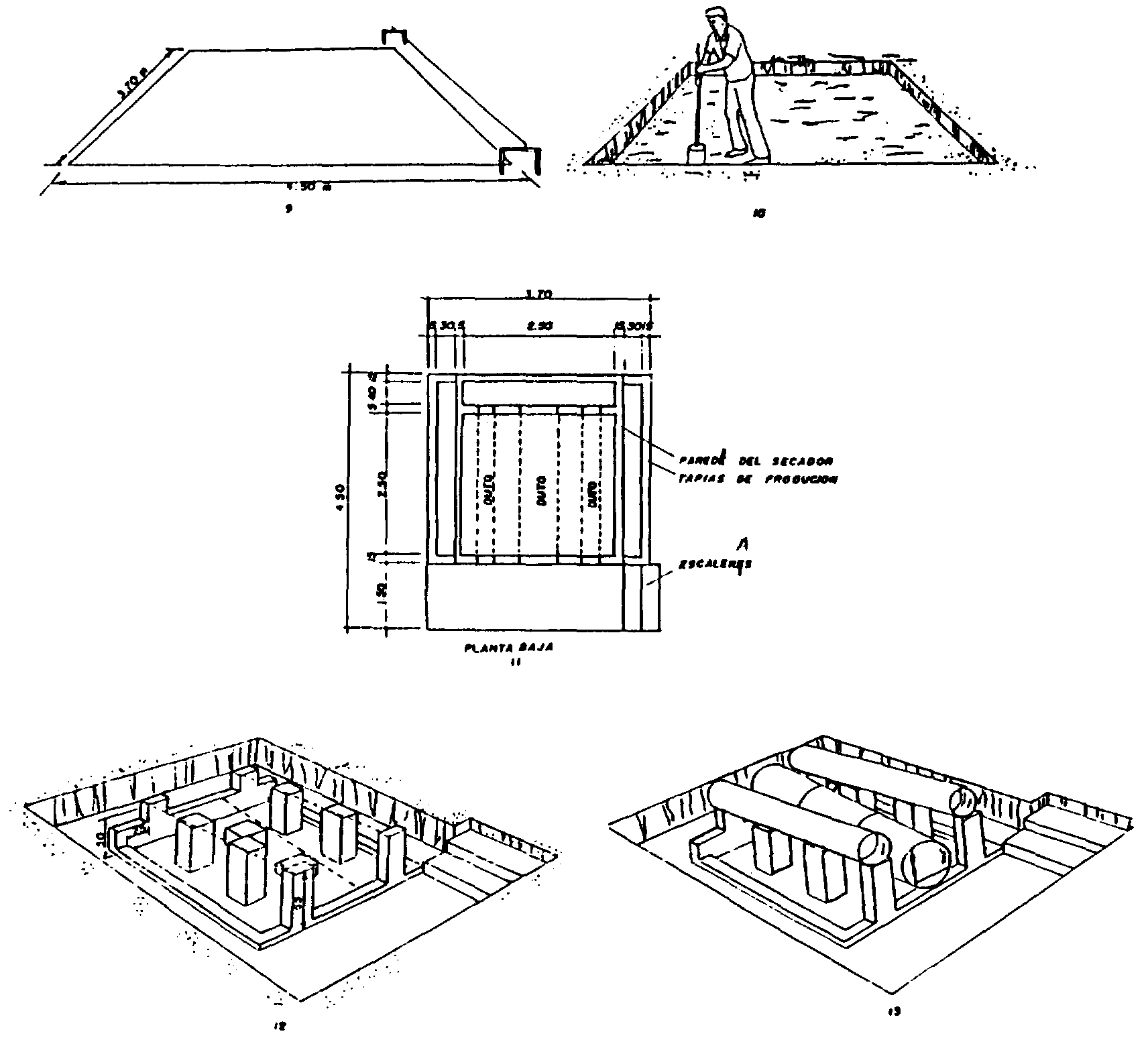 Dimensiones del secador. A continuación se describe un modelo de secador de seis metros cuadrados de superficie (2,5 m x 2,5 m) cuya capacidad máxima de carga es de 11 sacos de 60 kg de maíz desgranado. El secador se puede construir para una mayor capacidad de carga, pero no se recomienda que sea mayor de 3 m x 3 m. Para construir secadores con dimensiones diferentes a 2,5 m x 2,5 m se requiere realizar los cambios necesarios a las recomendaciones que se proporcionan en el cuadro 14, correspondientes a materiales y pasos para la construcción.