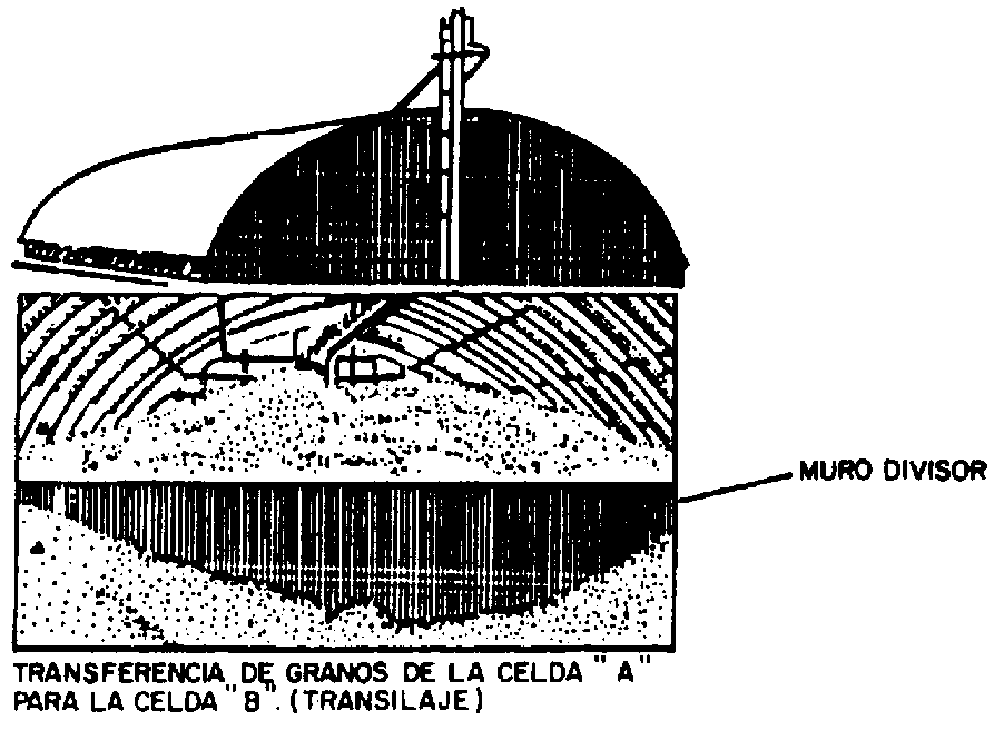 El transilaje resuelve parcialmente el problema de exceso y falta de uniformidad de la temperatura, ya que la reducción de la temperatura es pequeña, y son necesarias varias operaciones de transilaje para que ocurra una disminución significativa de la misma. La energía gastada, los daños y pérdidas provocados por el movimiento del producto (quiebre de granos y aumento del número de granos trizados), el desgaste del equipo, el espacio extra requerido, y el tiempo necesario para ejecutar la operación, son algunos de los factores que ponen en desventaja al transilaje en comparación con la aireación. El sistema de aireación, en general, esta formado por los siguientes elementos.