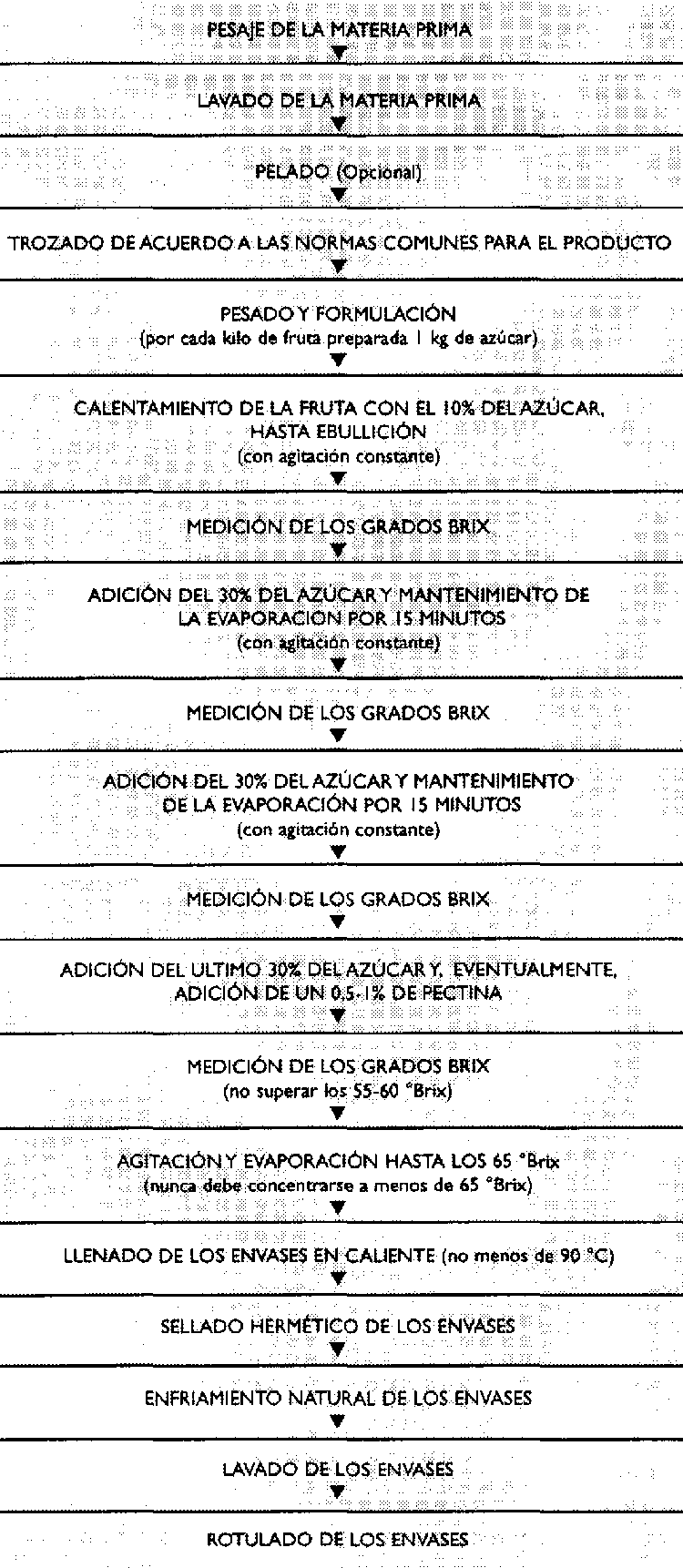 Una mermelada puede ser elaborada, en general, con todas las frutas y muchas hortalizas, pero como en el caso de otros productos, algunas materias primas presentarán ventajas sensoriales importantes. Un diagrama de flujos general para la elaboración de mermeladas se presenta en la Figura 2.