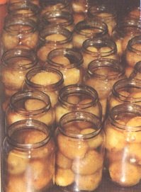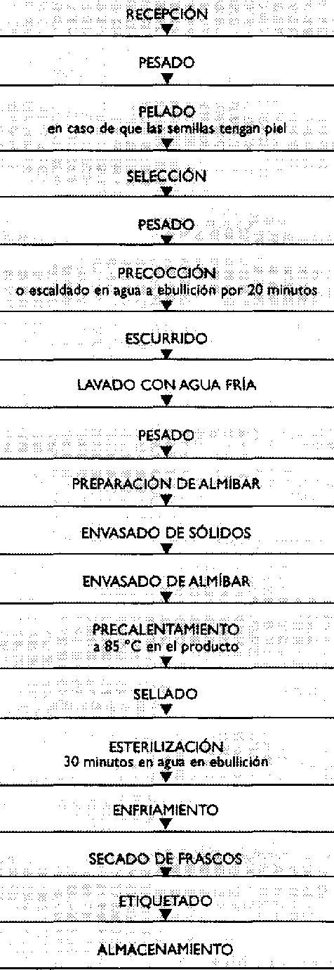 Se cierran los envases herméticamente y se esterilizan por 20 mio a 100 °C. Después de enfriarlos por rebalse con agua, los frascos se secan, se etiquetan y se almacenan.