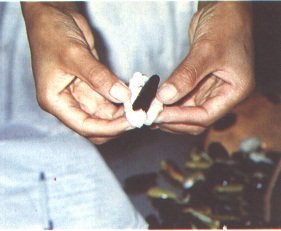 Separación de la pulpa de las semillas con tijeras (G. Paltrinieri)