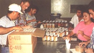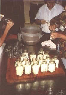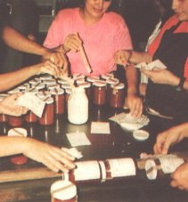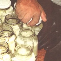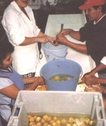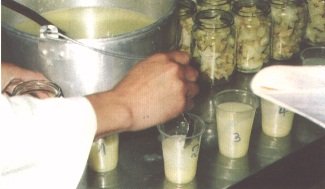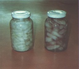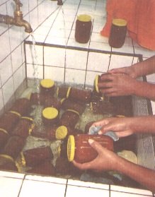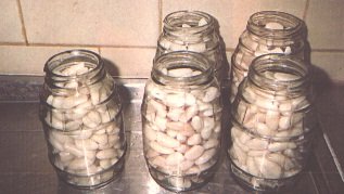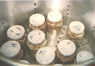 Semillas escaldades en los frascos, esperando el medoi de empaque (G. Paltrinieri)
