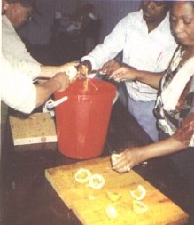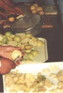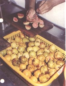 Frutos con cortes para facilitar el intercambio osmótico (G. Paltrinieri)