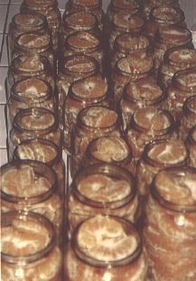 Frascos con gajos esperando adición del almibar (G. Paltrinieri)