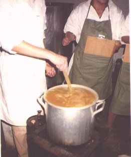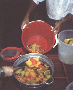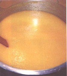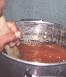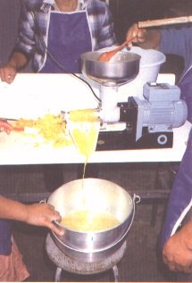 Calentamiento de la pulpa de papaya antes de agregar la pulpa de piña (G. Paltrinieri)