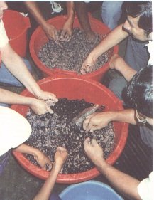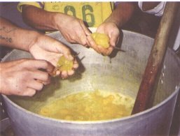 Pulpado manual de los frutos con adición de agua (G. Paltrinieri)