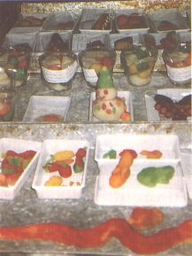 Distribución de la mezcla de mango y maracuyá en bandejas (G. Paltrinieri)