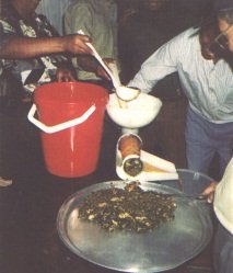 Pulpa con agua y azúcar para la separación de las semillas (G. Paltrinieri)