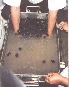 Escaldado de los racimos en agua hirviendo (G. Paltrinieri)
