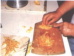 Corte de zanahorias (izq.); y limón (der.) trozado listo para la mezcla (G. Paltrinieri)
