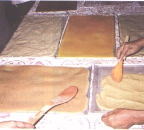 Distribución uniforme de láminas de diversas mezclas en las bandejas (G. Paltrinieri)