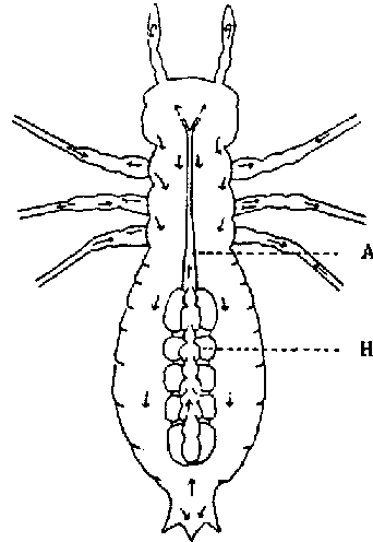 SISTEMA ClRCULATORIO. El sistema circulatorio es abierto y no cerrado como en los vertebrados, estando constituido por una serie de tubos (arterias, capilares, venas) y un tubo o vaso dorsal equipado con válvulas para evitar el retorno; que se contrae para impulsar la hemolinfa a través de las cavidades internas. La hemolinfa constituye la sangre de los insectos (Figura 1 6).