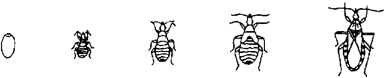 Figura 21. Metamorfosis incompleta con crecimiento gradual de un Hemíptera.
