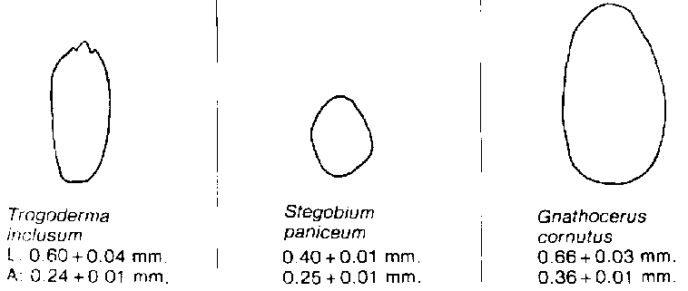 Los insectos que se desarrollan en granos y sus productos almacenados, son de tamaño pequeño; por lo general miden de 2 a 5 mm de longitud, aunque algunos llegan a alcanzar 8 a 12 mm.