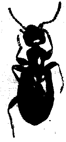DESCRIPCION. Insecto pequeño, de cuerpo frágil, de 3.0 a 3.5 mm de longitud; de color café oscuro, cabeza de forma semitriangular separada del resto del cuerpo por un cuello corto y angosto del protórax; protórax liso, redondeado, más ancho en el ápice que en la base, élitros que cubren completamente el abdomen (Figura 30).