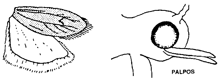 DESCRIPCION. Los adultos miden de 7 a 13 mm con las alas extendidas, alas anteriores de color canela claro, sin manchas visibles aunque las venas se notan ligeramente oscurecidas. Alas posteriores anchas, terminando en una punta roma, transparentes, con la venación muy visible y rodeada de una banda de pequeños pelos. Palpos labiales rectos. Los machos generalmente son más pequeños que las hembras. (Figura 77).