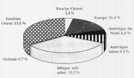 | Proche-Orient | 9,9 | 0,3 | 0,2 | - | - | 1,1 | 3,6 |