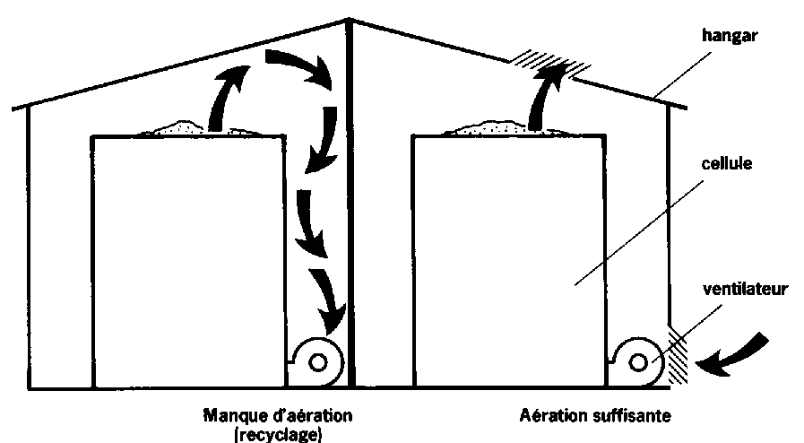 Le recyclage de l'air de ventilation est un phénomène néfaste qui se manifeste lorsque le ventilateur et la cellule sont situés dans un même local insuffisamment aéré.