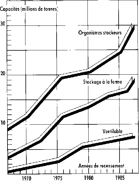 Evolution des capacités de stockage a la ferme et en organismes stockeurs. (D'après ONIC).