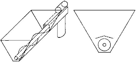 Dans ce cas la trémie a la forme d'un V, le transporteur est situé à la pointe du V. L'alimentation de celui-ci s'effectue par l'intermédiaire de trappes disposées régulièrement sur toute la longueur