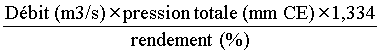 La puissance absorbée est reliée au débit et à la pression par la formule: