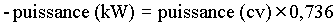 Le rendement est généralement indiqué par le constructeur pour chaque condition d'utilisation. On peut cependant faire une première estimation en le prenant égal à 75 %.