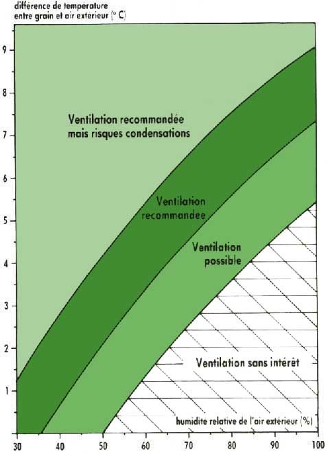 Diagramme de conduite de la ventilation pour céréales aux normes (doc. itcf).