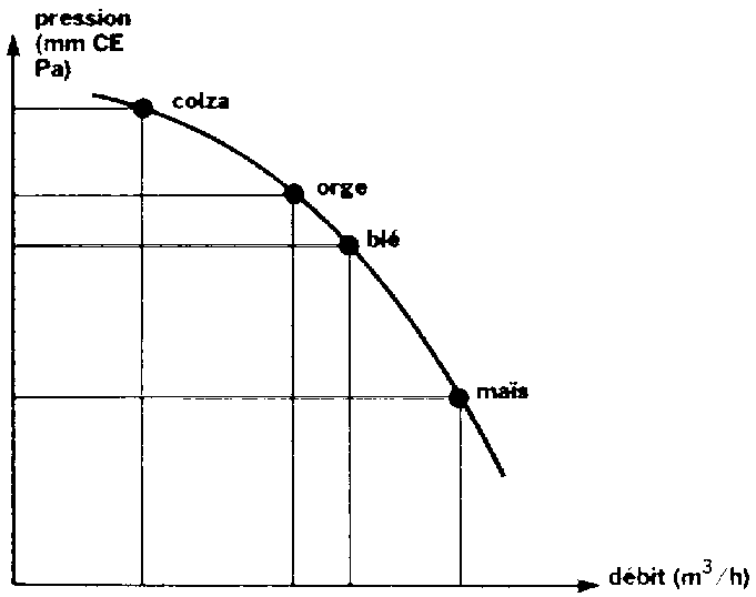 - avec du blé: pression = 60 mm C.E., débit = 4 600 m3/h.