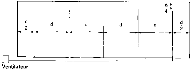 Si l'on place une gaine à l'aspiration, avant le ventilateur, son diamètre devra être au moins 1,5 fois celui de l'ouie d'aspiration.