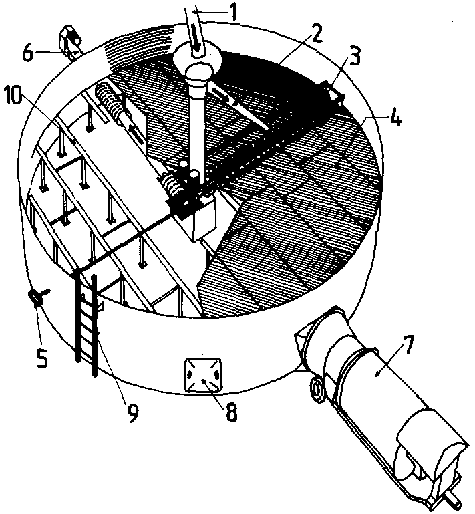 | 4: Colonne annulaire - circuit grain | 8: Chambre grillagée d'arrivée d'air chaud |