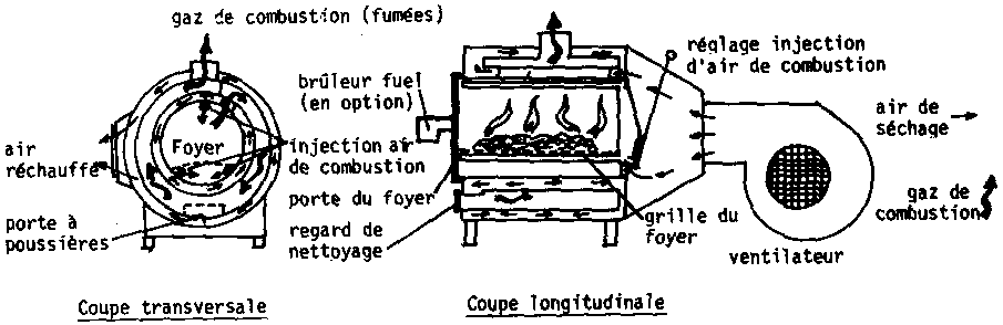 La suppression de l'échangeur peut être envisagée pour éviter de gaspiller des calories. Nous avons parlé des risques d'un séchage direct utilisant le fuel comme combustible. Cette solution nécessite un parfait réglage du brûleur à fuel.