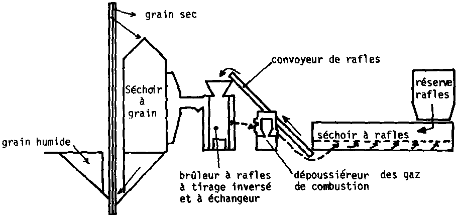 Fig. 63: Schéma générateur à rafles de mais sur séchoir continu. (D'après Doc. ROULIN.)