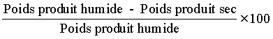 L'humidité du produit est couramment exprimée par le rapport en pourcentage du poids d'eau au poids total