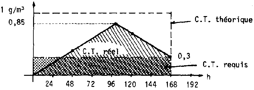 Cette notion est essentielle pour bien mener la fumigation, Pour une espèce d'insecte donnée et pour une température donnée de la denrée, la donnée de base est la concentration effective en gaz et le temps pendant lequel elle agit. Le produit concentration x temps - appelé C.T. - est exprimé en mg x h/l (ou g x h/m³).