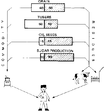 Two routes are available to convert these residues into useful products, as indicated in Figure 2: through feeding to animals, or by some industrial process.