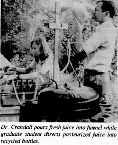 This brings up the subject of what other juice can be processed. About the only limit is that it must be an acidic juice (pH<4.5; safer to say <4.0). This includes apple, some tomatoes, lemon, lime, passion fruit, cashew etc. Dr. Crandall only experimented with orange and apple juice and a drink similar to one liked in Nepal called "orange squash" (25% orange concentrate, 42.5% sugar and 32.5% water).