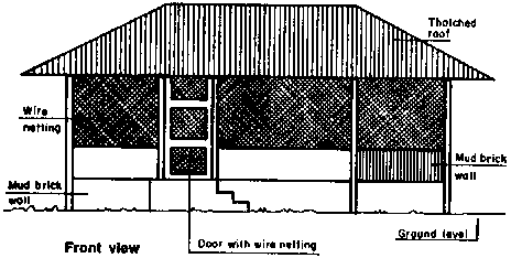Do not make solid walls more than 0.5 metre high. Close the remainder of the space with wire netting or bamboo laths.
