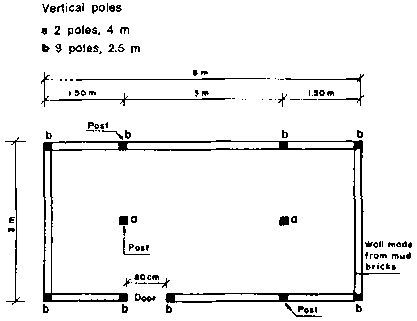 You make the walls of earth with wooden posts or with clay bricks.