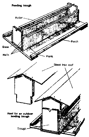 If the trough is outside the poultry house, make a little roof of sheet iron.