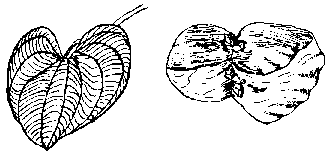 The leaves are alternate or opposite, smooth or hairy. They are usually heart- shaped. In certain species small tubers called bulbils are found in the axils of the leaves