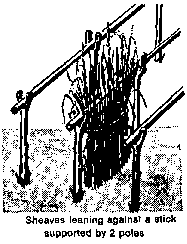 Wither: Stack the sheaves so that they lean against each other, standing upright with heads upward, and place one sheaf over the top of the heads, so as to protect the grains from the rain;