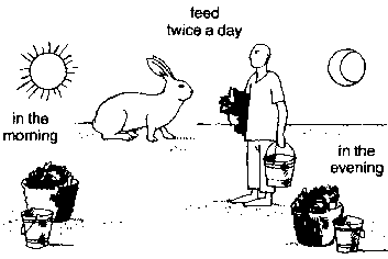 26. Rabbits should be given food twice each day, once early in the morning and once in the evening, after sunset, and water as often as they need it.