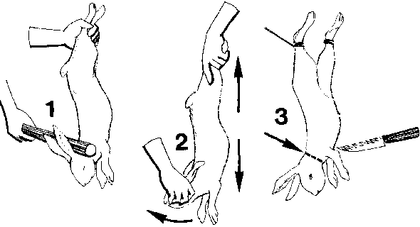 260. Remember, you can kill rabbits one al a time when you need meat. The drawings on the next pages show you how to kill and clean a rabbit.