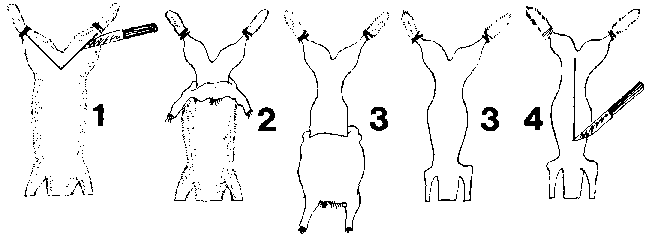 1 slit the skin around both back feet and make a cut from one