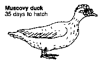 However, there is one exception. The eggs of a Muscovy duck take 35 days to hatch. You will learn more about the Muscovy in the next booklet in this series.