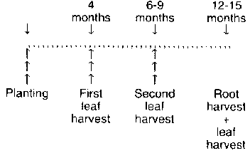 123. In long-season cultivars, you can obtain at least two leaf harvests while the plant is growing and still get acceptable root yields.