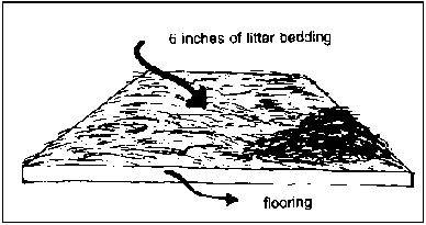 2. Spread a six-inch layer of litter bedding over the floor space. Allow manure and urine to accumulate.